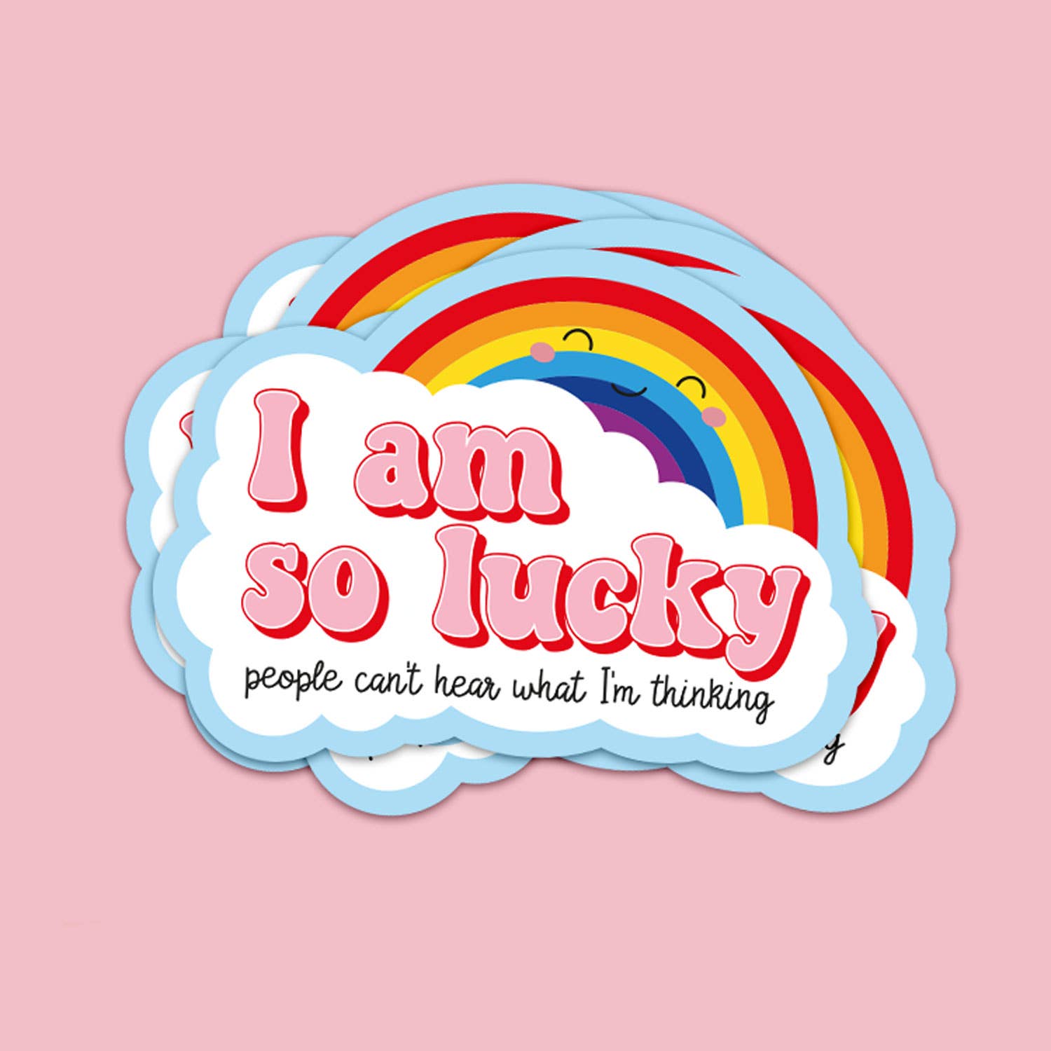 Lägg till en extra dos av kawaii i din vardag med vårt "I am so lucky"-klistermärke! Den roliga texten "Jag är så lycklig att människor inte kan höra vad jag tycker" gör detta till den perfekta dekalen för alla som älskar söt och trendig design. Perfekt för att dekorera din laptop, vattenflaska, cykel eller telefon – möjligheterna är oändliga!