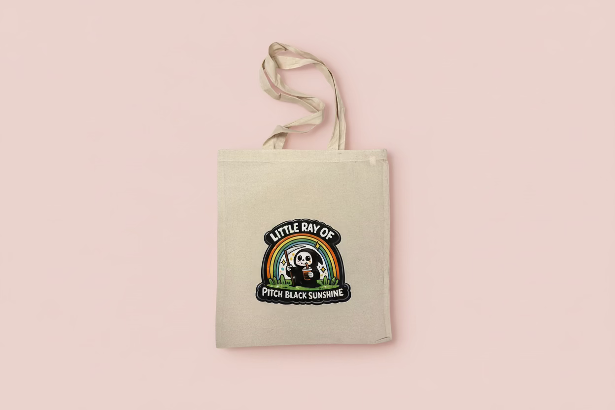 Little ray of pitch black sunshine återanvändbar tygväska