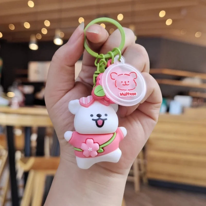 Nyckelring Kawaii Hund med Rosa Blomma - Söt Accessoar för Väska & Nycklar