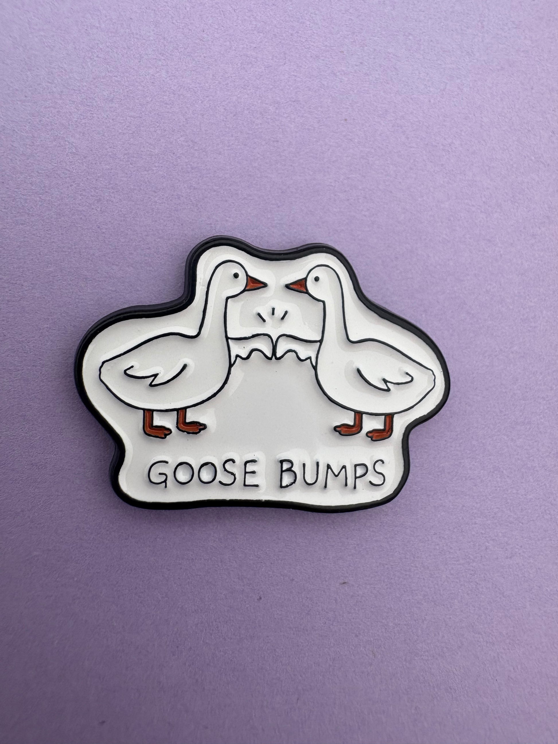 Ge din outfit en charmig twist med vår lilla pin med texten "Goose bumps". Perfekt för att sätta en personlig touch på din väska, jacka eller keps – den här pinnen är ett måste för dig som vill uttrycka din unika stil!